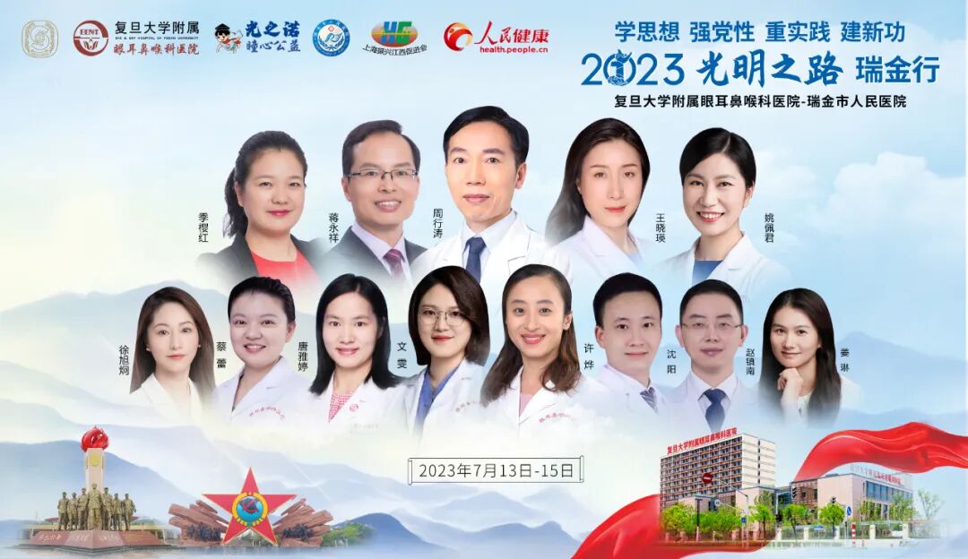 2023光明之路瑞金行:复旦大学附属眼耳鼻喉科医院公益白内障手术为退役老兵和瑞金百姓带去新希望发表时间:2023-07-13 17:47 ![]() ![]() ![]() ![]() 2023年7月,在建党节之际,由上海宋庆龄基金会发起,复旦大学附属眼耳鼻喉科医院共同主办的2023年“学思想 强党性 重实践 建新功”公益活动在红色革命根据地-江西瑞金正式启航。 本次公益活动的医疗团队阵容强大,由复旦大学附属眼耳鼻喉科医院院长周行涛教授、蒋永祥教授、王晓瑛教授领衔,共有20余名眼科专家共同参与。在有限的时间内,医疗专家团队将为数名退役老兵和活动期间前来瑞金市人民医院的百姓开展公益白内障手术,为他们带去视力重获新生的希望与温暖。 ![]() ![]() ![]() ![]() 公益白内障手术是一项高度复杂的手术,它的成功不仅意味着病患从黑暗走向光明,更体现了医者的慈悲和无私的奉献精神。医疗团队精心筹备,将施行手术的每个步骤都严谨细致,以确保手术的安全和效果。 同时,本次活动也是对退役老兵的关怀与尊重,他们曾为国家和人民做出了巨大贡献,而现在他们需要我们的关爱和支持,让他们晚年温暖安心。活动期间,医疗团队将为数名退役老兵提供全面的眼部义诊和健康咨询,让他们得到专业的医疗建议与帮助。 ![]() ![]() ![]() ![]() 江西 瑞金 ![]() 江西瑞金因“掘地得金、金为瑞”而得名,瑞金是著名的红色故都、共和国摇篮、中央苏区时期党中央驻地、中华苏维埃共和国临时中央政府诞生地、中央红军二万五千里长征出发地,长征精神的发源地、中央苏区全红县、党的群众路线和苏区精神的形成地。党的初心和使命在这里得到磨砺和淬炼,瑞金更是全国爱国主义和革命传统教育基地。此次活动正是在这个具有深厚红色文化底蕴的地方展开,意义非凡。 同时,瑞金也是光明之路公益行动的第二站选址,医疗团队将在此学习党史,以实际医疗行动为百姓办实事,拥军拥民做公益,为创造更加美好的社会贡献一份力量。 最后,预祝本次公益活动圆满成功,感谢所有医护人员和志愿者的付出!希望通过这次公益活动,让更多的退役老兵和瑞金市民得到关爱,重获光明与希望!让我们携手努力,为社会的进步和人民的福祉做出更大的贡献! ![]()
